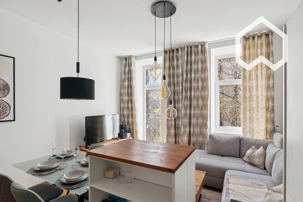 Welcome to this beautifully renovated 1‑bedroom corner apartment on the 2nd floor of a charming turn-of-the-century building on Engerthstraße. With 42 m² of living space, this apartment is a first‑time occupancy after a full renovation and has been furnished with exceptional care and high‑quality materials—perfect for anyone who wants to move in immediately without any effort. The corner layout provides natural light from two sides and a peaceful view into the inner courtyard. A small balcony of...