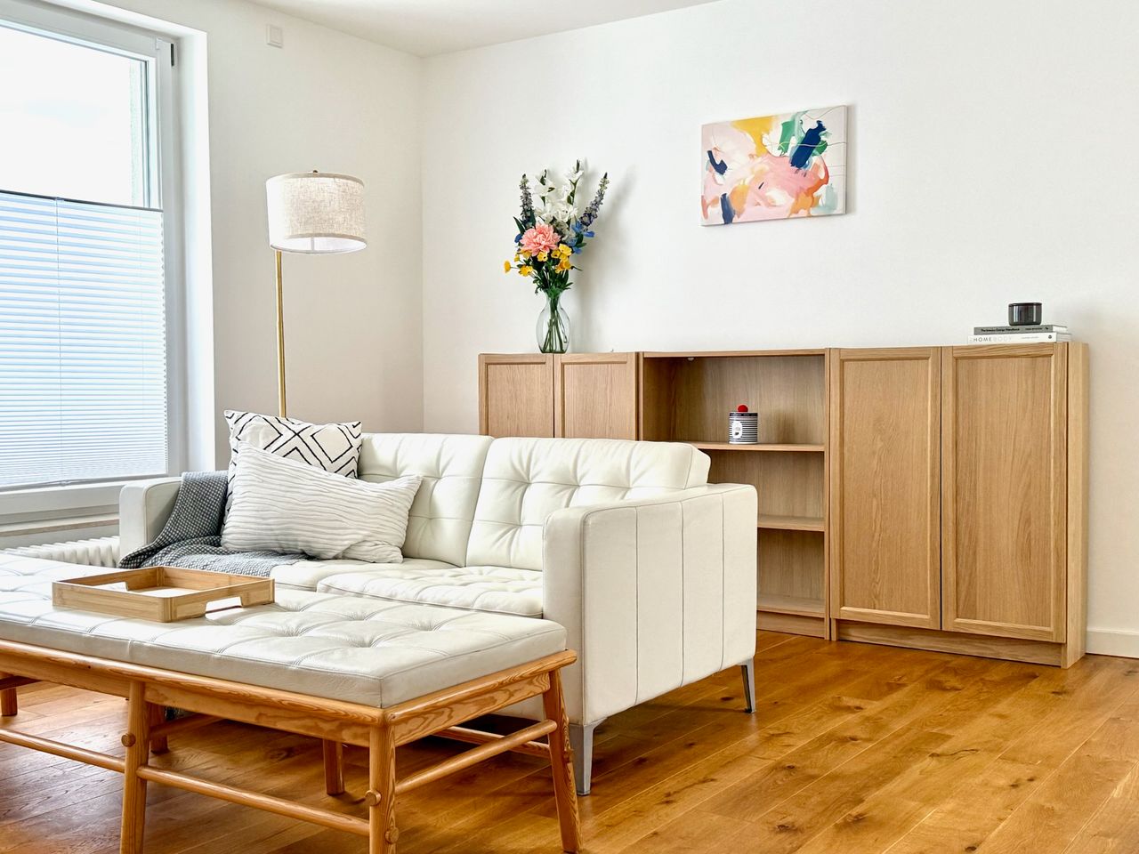 This high-quality furnished 3-room apartment (approx. 70 m²) is located in the attractive district of Alt-Moosach and is ideal for project assignments, relocation or couples working from home. The bright living and dining area with open kitchen creates a spacious atmosphere. Thanks to its south and west orientation, the apartment benefits from plenty of natural light. The west-facing balcony offers pleasant evening sun and is perfect for relaxing after work. The master bedroom faces east, and ...